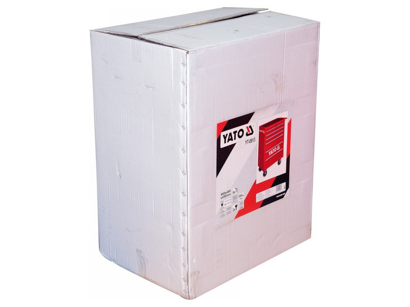 Yato service cabinet. It has 6 drawers on ball guides lined with foam. Profiles made of durable steel sheet. Oil -resistant top -resistant top. The cabinet has large rubber wheels, including two rotary with protection. Resistant to high loads up to 300 kg. Necessary in car workshops and vehicle service stations.