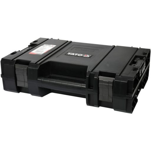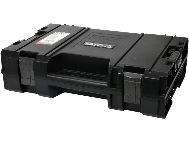 Designed for transporting and storing power tools: drills, screwdrivers, angle grinders, etc. Designed for both professionals and DIY enthusiasts. It belongs to the YATO modular box system. It can be clipped to the system base box on the YT-09166 and YT-09162 and YT-09183, as well as a second, identical box for power tools.