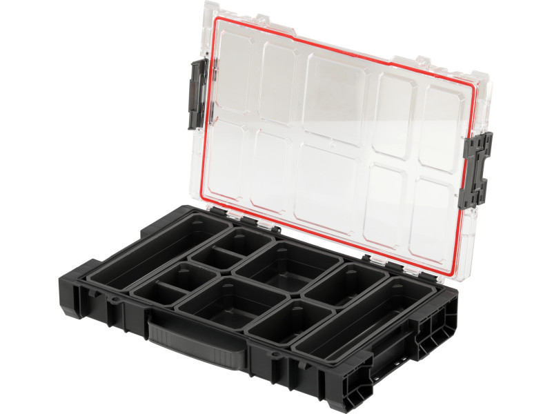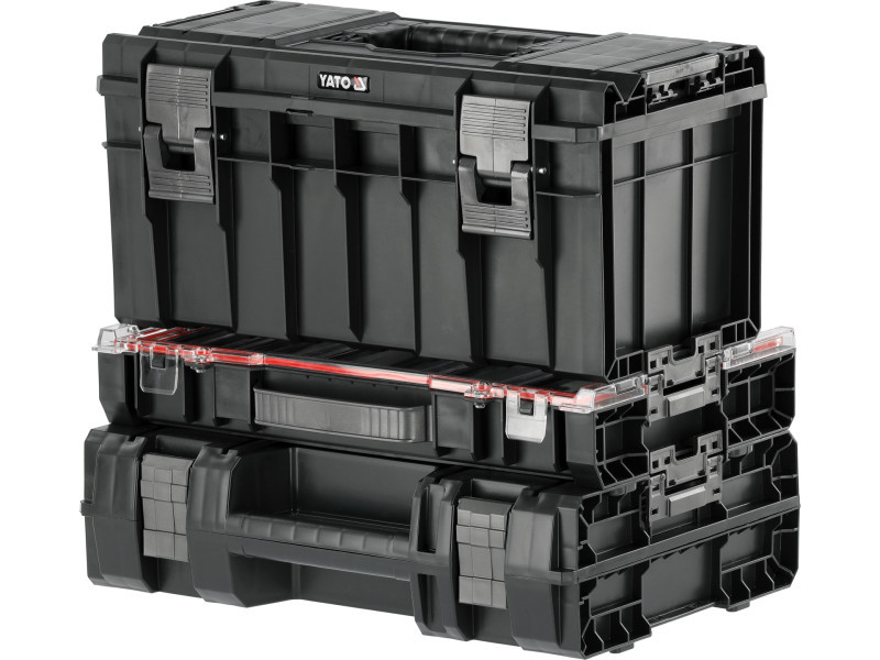 A set of 3 elementsówith solid fasteners and side connectors made of strong polyamide. The combination in this configuration creates an interesting solution so that workshop normals will always be at hand. Flexible seals installed in the lids provide splash-proof , which protects the contents from splashing and dust.