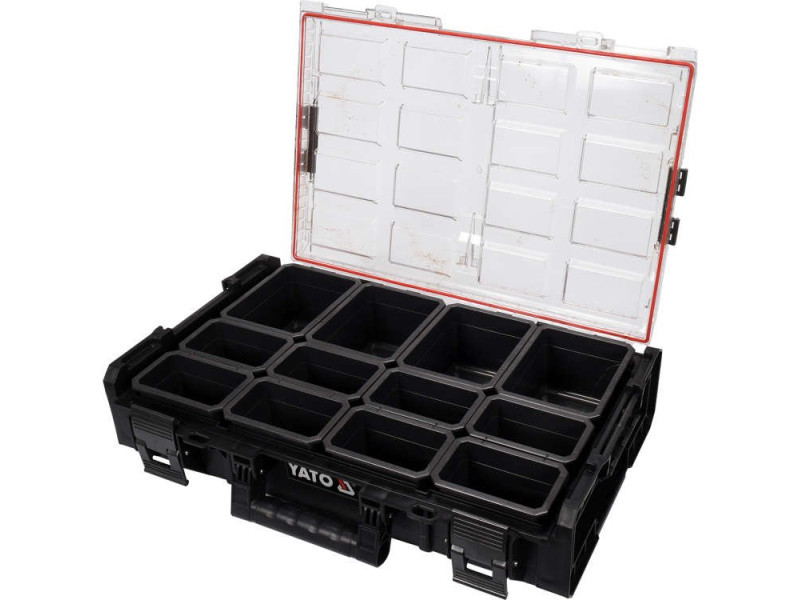 Allows convenient storage and transportation of small itemsós. In the YATO crate system, it serves as a base organizer, allowing you to combine crates with subsequent organizers.