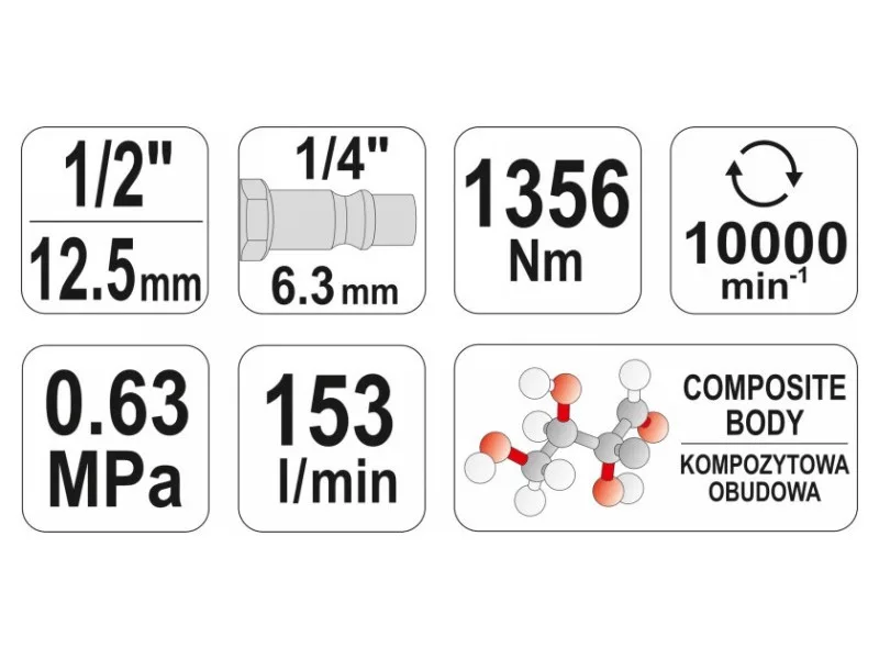 YT-0953 is synonymous with reliability and performance in a professional workshop. With a power of 1356 Nm and a weight of just 2 kg, this pneumatic wrench offers unparalleled control and work comfort.