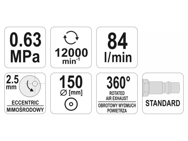 YATO Pneumatischer Exzenterschleifer leichter 150 mm YATO Pneumatischer Exzenterschleifer leichter 150 mm YATO Pneumatischer Exzenterschleifer leichter 150 mm