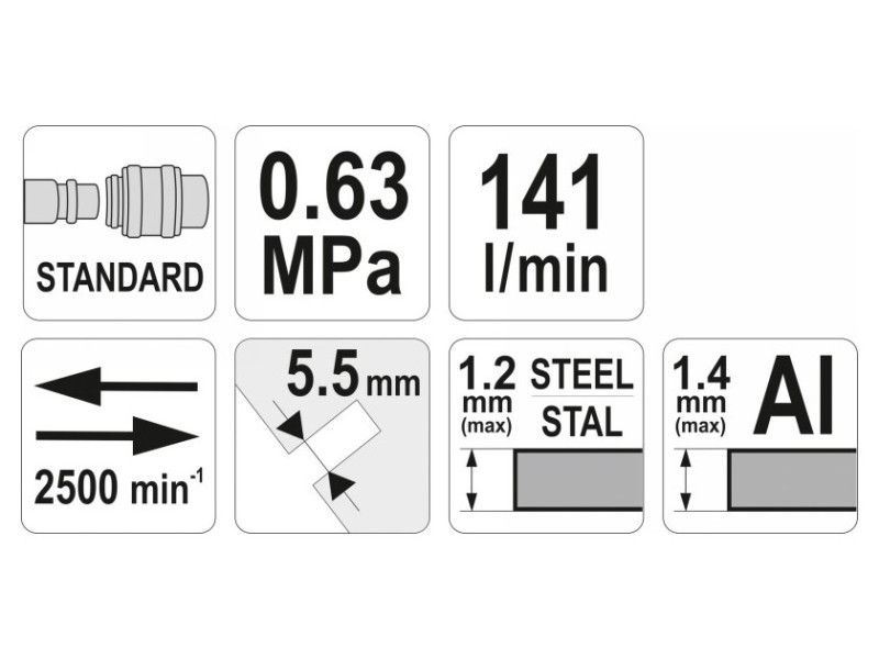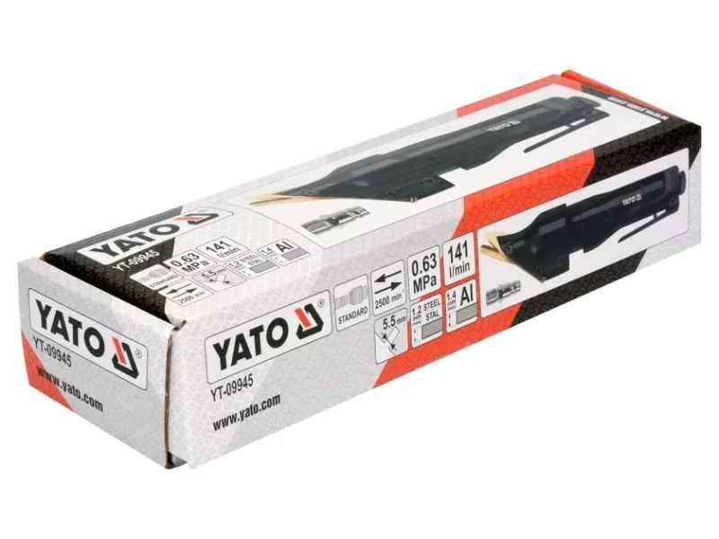 YT-09945 pneumatic shears are a professional YATO tool that will work in any workshop. You can easily cut steel and aluminum, enjoying comfort at work.