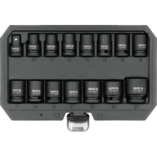 YATO Maschinen-Steckschlüsselsatz 1/2", 15-teilig 10-27 mm mit 3/8" x 1/2" Adapter