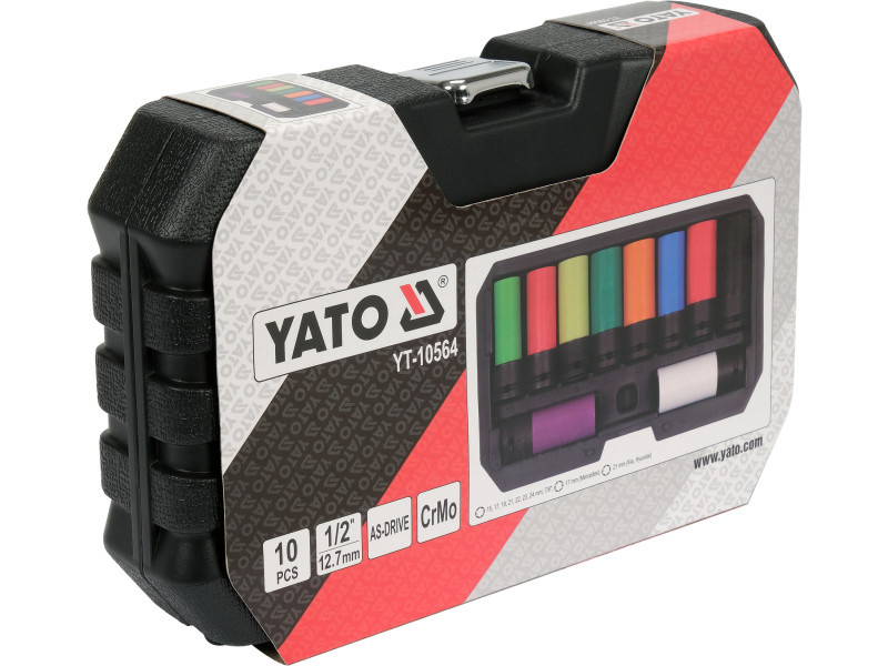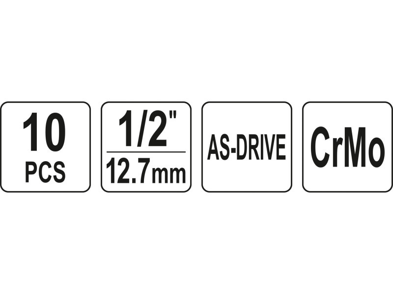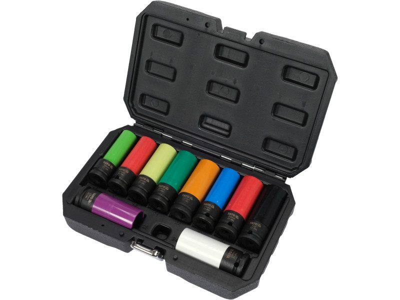 Set of 10 impact sockets with As-Drive system designed for aluminum rims.