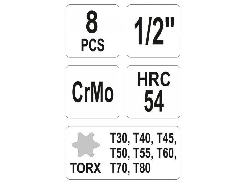 YATO Maschinen-Steckschlüsselsatz mit langem Bit, 8-teilig, Torx 1/2 Zoll T30-T80 CrMo YATO Maschinen-Steckschlüsselsatz mit langem Bit, 8-teilig, Torx 1/2 Zoll T30-T80 CrMo