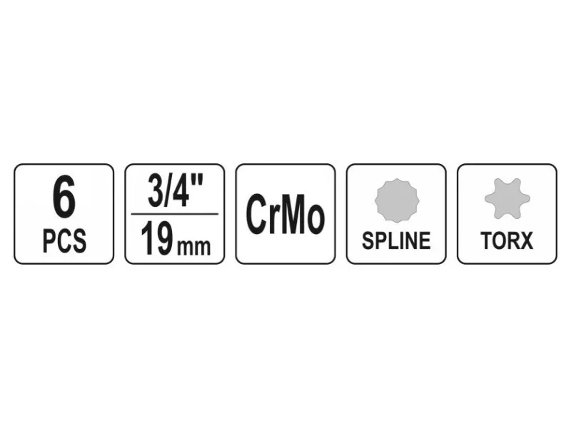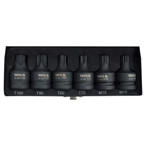 6-piece set of torx and spline impact wrenches recommended for automotive and mechanical services.