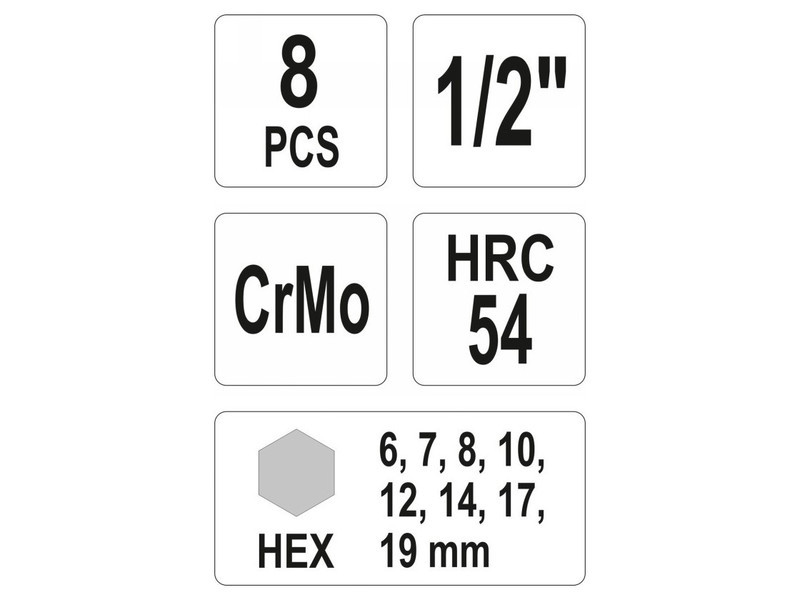 YATO Machine Langbit-Steckschlüsselsatz 8-teilig Inbus 1/2" 6-19 mm CrMo YATO Machine Langbit-Steckschlüsselsatz 8-teilig Inbus 1/2" 6-19 mm CrMo