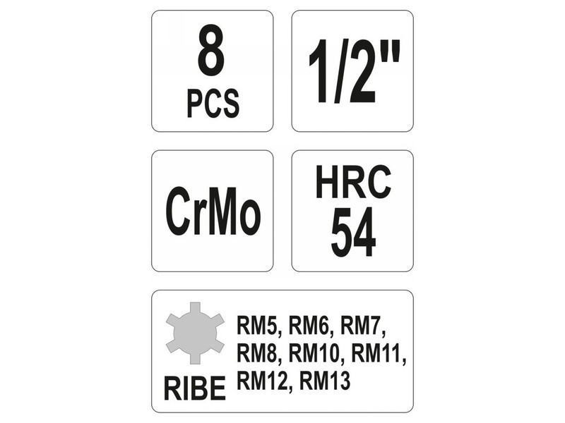 YATO Machine langer Bit-Steckschlüsselsatz 8-teilig Ribe 1/2" RM5-RM13 CrMo YATO Machine langer Bit-Steckschlüsselsatz 8-teilig Ribe 1/2" RM5-RM13 CrMo
