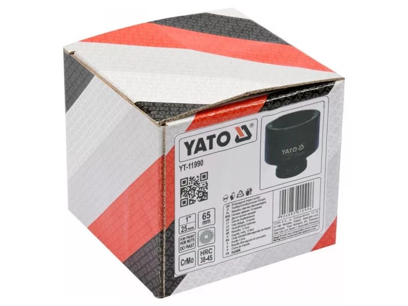 Impact socket for car hubs. drive size 1" (25mm), socket size 65mm. Made of chrome-molybdenum steel. Impact sockets designed for truck hubs and other machinery.