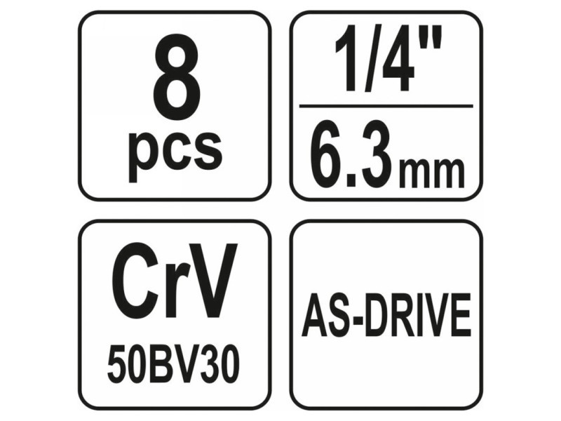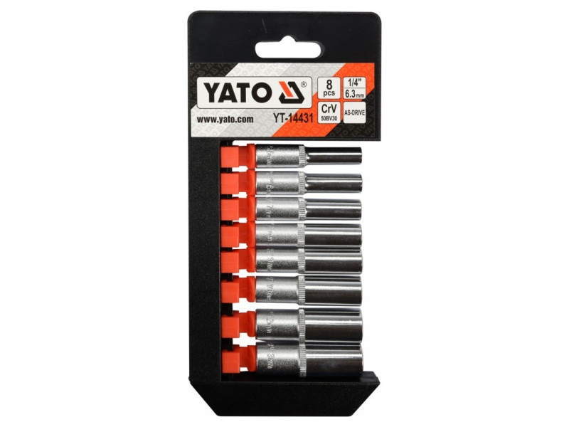 A set of YATO attachments especially recommended for professional car and mechanical services, they work perfectly with yato rattles. The attachments were made using the matrix method, and before the hardening process was calibrated with precise fittings and control devices. Equipped with an AS-DRIVE system, increasing the maximum moment by 25%, with full protection of the cutter edges, attachments with a double -ton surface finish.