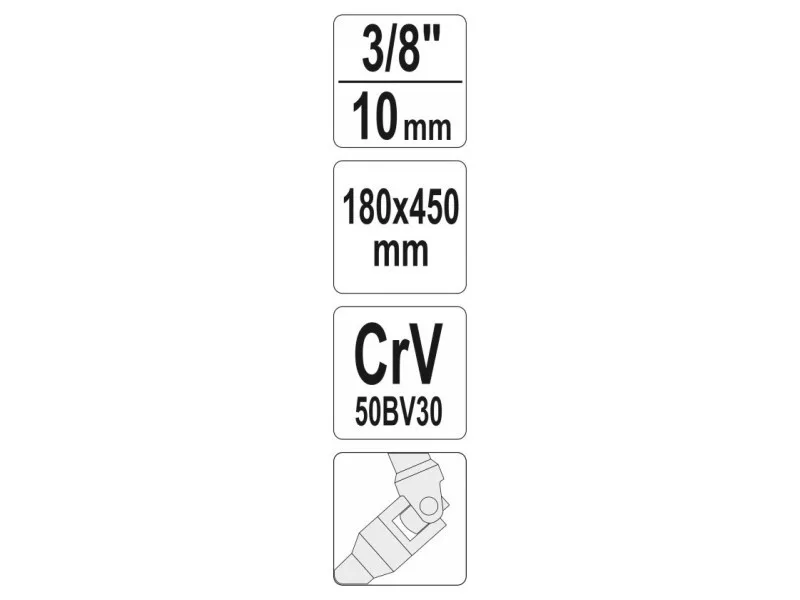 YATO T-förmige Kurbel mit Scharnier 3/8" 450 mm CrV YATO T-förmige Kurbel mit Scharnier 3/8" 450 mm CrV
