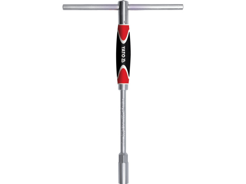 T-type socket wrench equipped with ergonomic handle and sliding knob with position lock. The long shank makes it possible to work in deep recesses.