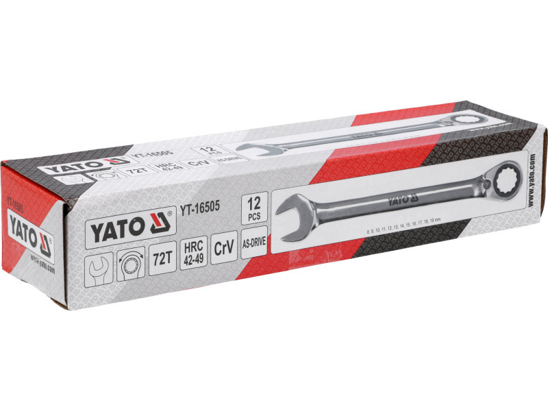 Set of 12 ratchet combination spanners. The case facilitates convenient access and keeps the workshop tidy.