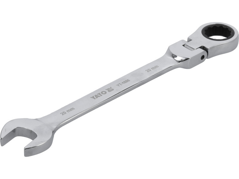 High-quality combination wrench equipped with ratchet and joint. Designed for automotive workshops, service shops and do-it-yourselfers.