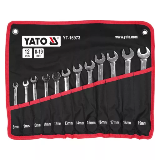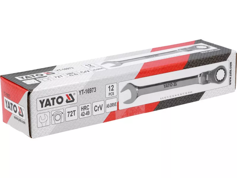 Set of 12 combination spanners with ratchet and joint. The joint allows the spanner to be used in hard-to-reach areas. The case makes it easy to conveniently access the keys and keep the workshop tidy.