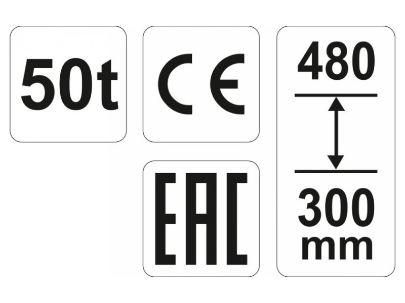 Professional YATO brand hydraulic post lift, featuring a system of valves that precisely dose the oil flow. The lifting capacity of the jack is 50 tons, and the lifting range is from 300 mm to 480 mm. It is characterized by its small size and weight, which is important for moving and storage. Indispensable in auto repair shops and vehicle service stations.