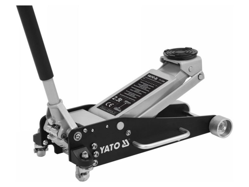 High quality lightweight car jack constructed on the principle of an arm jack. It has a hydraulic drive that operates in the horizontal axis. The low profile allows you to slide the jack under any car, also with a low chassis.