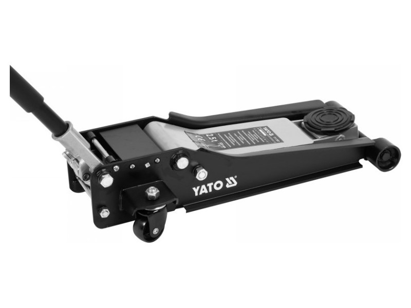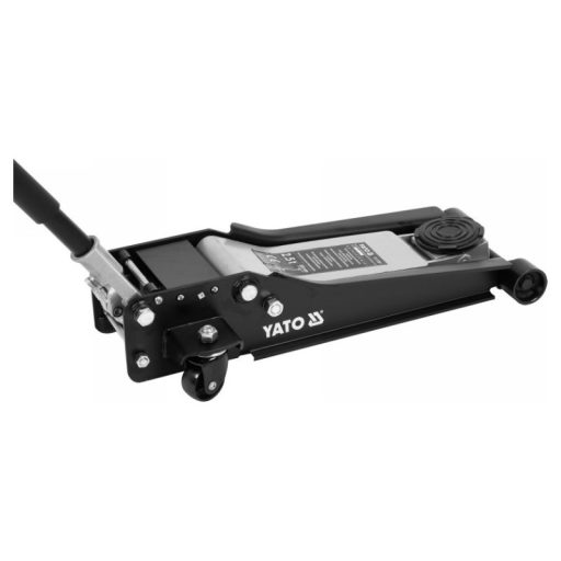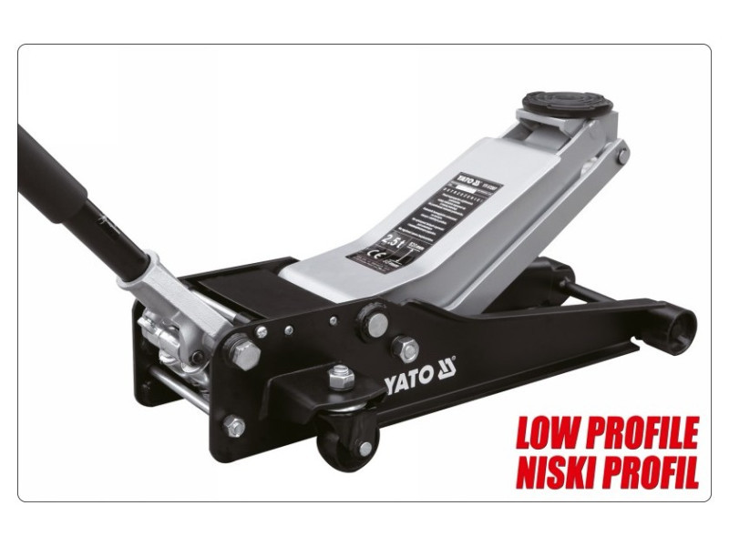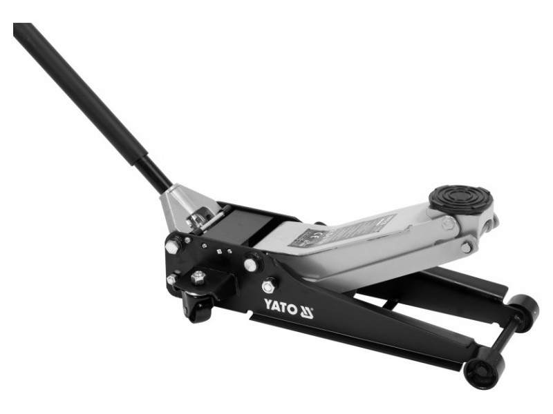 High quality car jack with dual piston pump. Constructed on the principle of an arm jack. It has a hydraulic drive operating in the horizontal axis. Low profile allows the jack to slide under any car, also with a low chassis. Indispensable in auto repair shops, tire services and vehicle service stations.