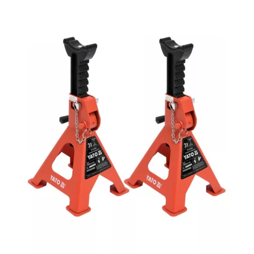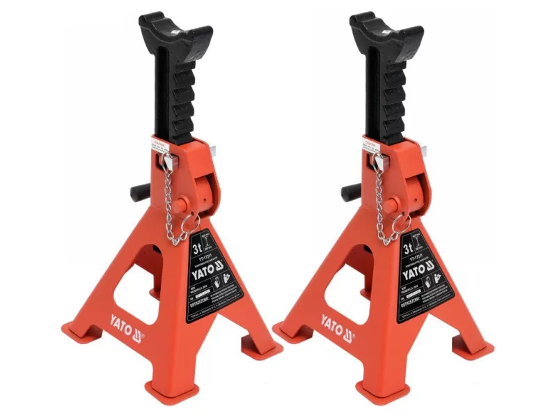 Professional car supports have four paws, height adjustment in the range of 280-420 mm, capacity of 3 tons. The stands have an additional protective wedge. Kobyłki covered with an anti -corrosive layer. Excellent for relieving the jack. They belong to the basic equipment of every workshop.