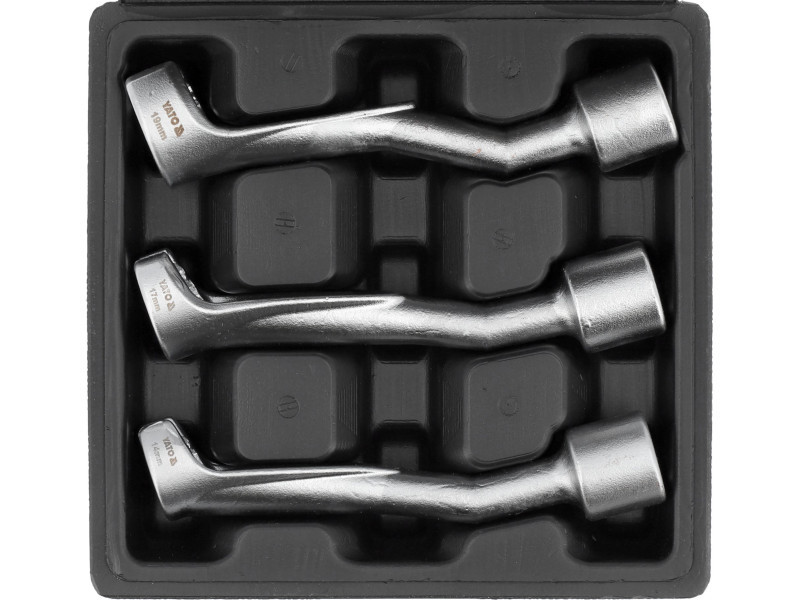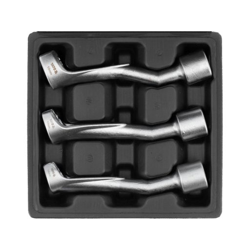 Set of three 1/2" inch spanners for fuel injectors and injection pumps. Spanners made from high quality chrome vanadium steel. Kit for use on BMW, VW, Mercedes-Benz vehicles.