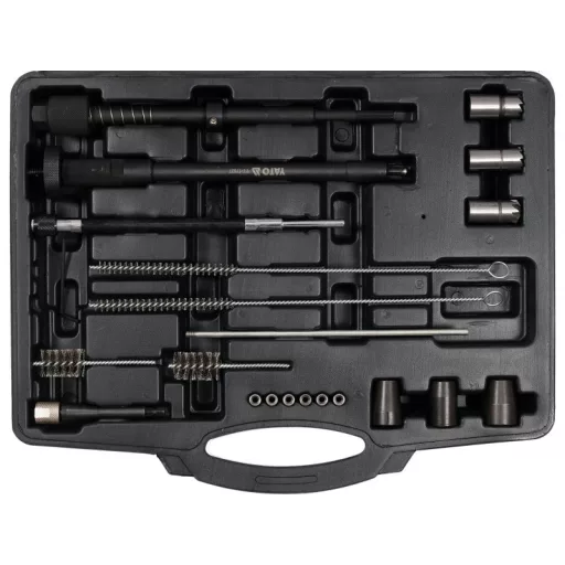 Ensure perfect sealing of injectors with the professional YT-17627 kit. This comprehensive solution for cleaning and machining common rail injector seats guarantees reliable engine performance.