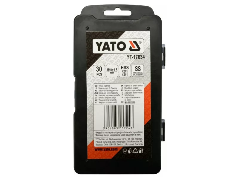| Set includes | single-stage tap to create a thread for a new insert, spiral insert x25 (M10x1.5), knob for screwing in spiral inserts, punch, drill for reaming damaged thread, |