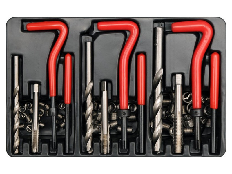 | Set includes | single-stage tap to create a thread for a new insert x3, spiral insert x75 (M6x1x10.8 mm x25, M8x1.25x10.8 mm x25, M10x1.5x13.5 mm x25), knob for screwing in spiral inserts x3, |