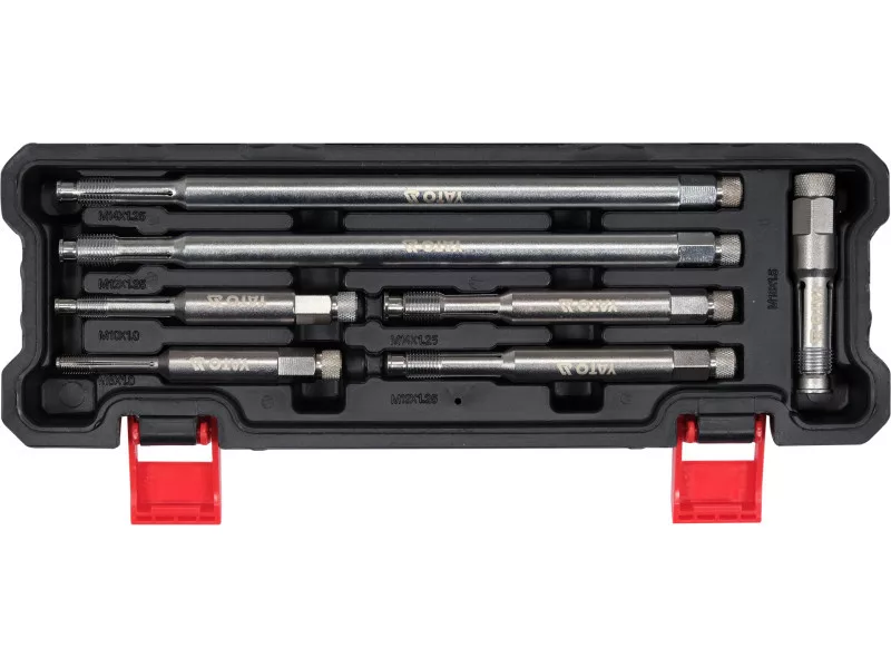 Set includestap x15 (M8x1.0x115 mm, M10x1.0x115 mm, M12x1.25x135 mm, M12x1.25x260 mm, M14x1.25x130 mm, M14x1.25x260 mm, M18x1.5x80 mm)