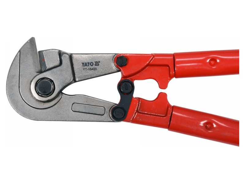 Scissors designed for cutting mesh / mat / reinforcement. And also for cutting reinforcement rods and wires, a CRV steel head with a specific hook jaw, greatly facilitates the location of a cut rod between the jaws of scissors. Head and jaws, vacuumed and hardened to hardness of about 40 HRC. The range of applications- cutting rods with a hardness of up to 19 HRC to fi 11 mm and 9 mm fi rods with hardness up to 40 HRC handles made of steel pipe, total length about 800 mm. Scissors intended for cutting mesh / mat / used for reinforcement works,