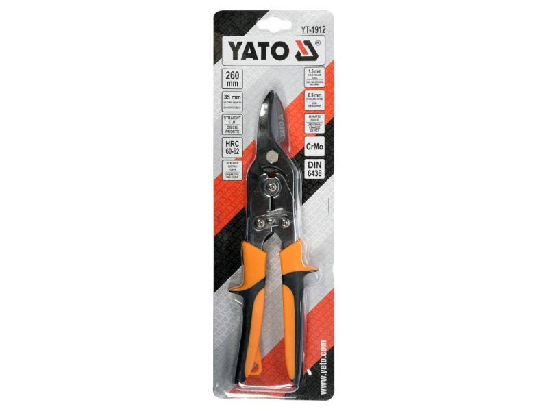 Professional, manual sheet cutting scissors. Jaws dusted from molybdenum steel /crmo /, hardened to approx. 60-62 HRC, induction hardened. For cutting steel sheets up to 1.5 mm thick and stainless steel up to 0.9 mm thick. Total length 260 mm. Profile - simple.