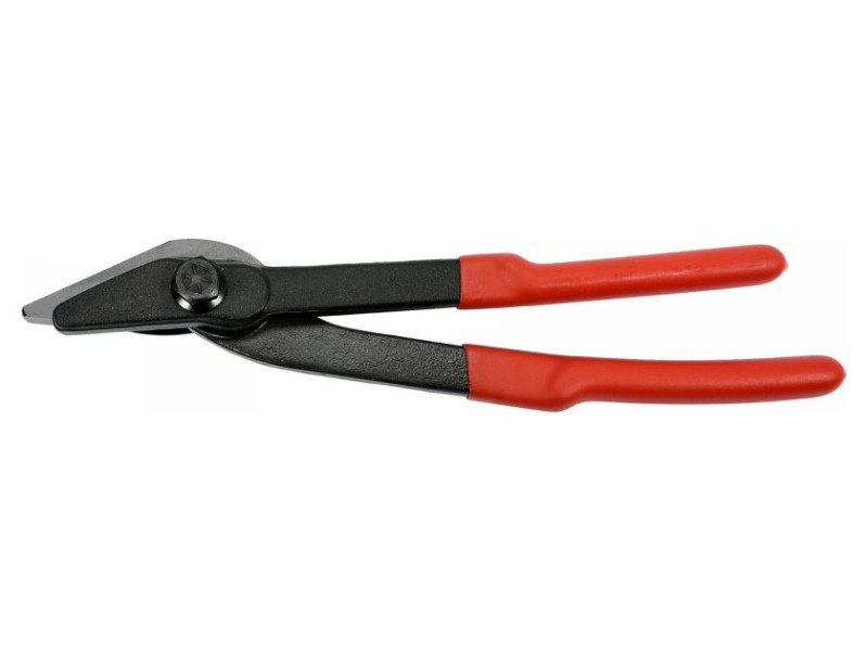 Specialized scissors for effective, safe cutting of steel tapes / e.g. steel coat used to close loads /. The construction of the jaws allows for safe cutting of steel tapes up to 28 mm wide and a thickness of up to 0.8 mm. Scissors dusted from high carbon steel / hcs /. Inductively tempered to a hardness of 58-61hrc. Handles in hard, slippery vinyl covers. Total length 305 mm. For safe cutting of steel tapes used to close loads.
