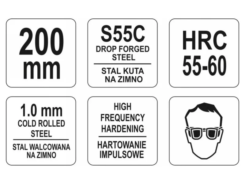 - jaws induction hardened to a hardness of about 55-60 HRC, effectively cut steel sheet up to 1 mm thick, cold-rolled steel
