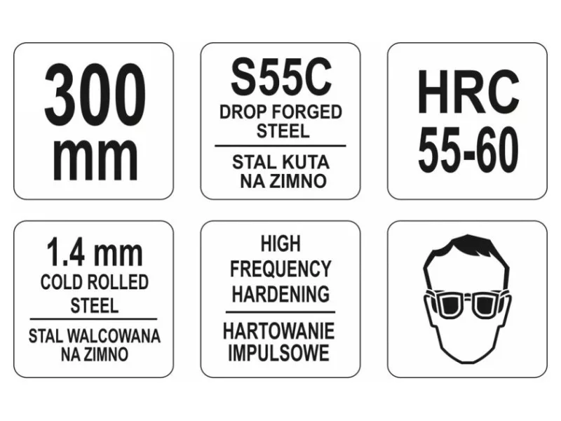 • jaws induction hardened to a hardness of about 55-60 HRC, effectively cut steel sheet up to 1.4 mm thick, cold-rolled steel