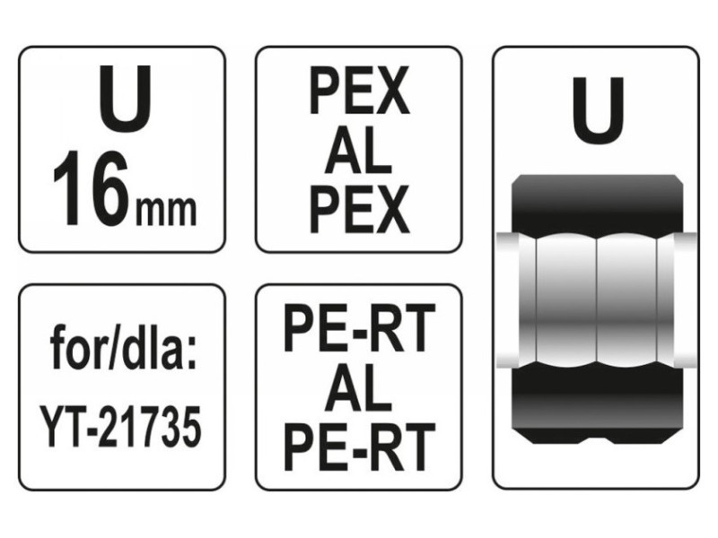 U-type spare matrix designed for the YT-21735 press.It is used to crimp 16mm U-type fittings on PEX pipes.
