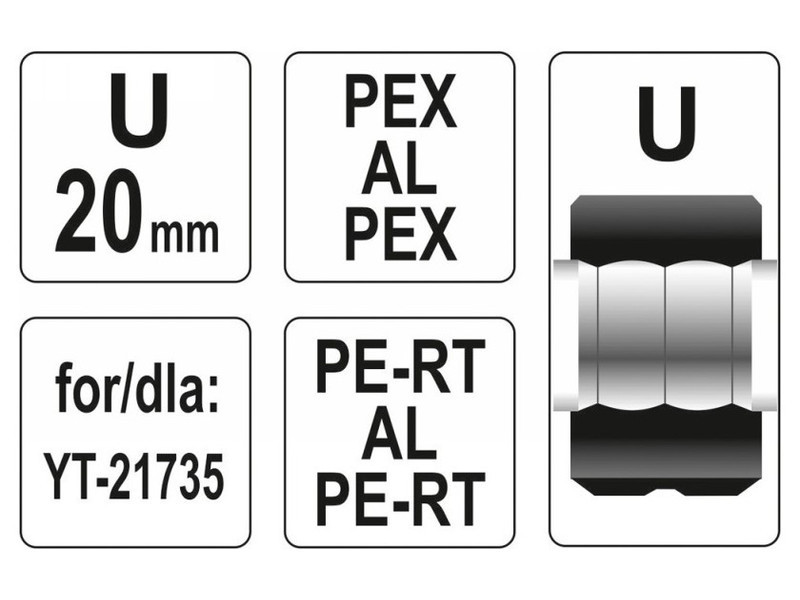 U-type spare matrix designed for YT-21735 press.It is used to crimp U-type fittings of 20mm size on PEX pipes.