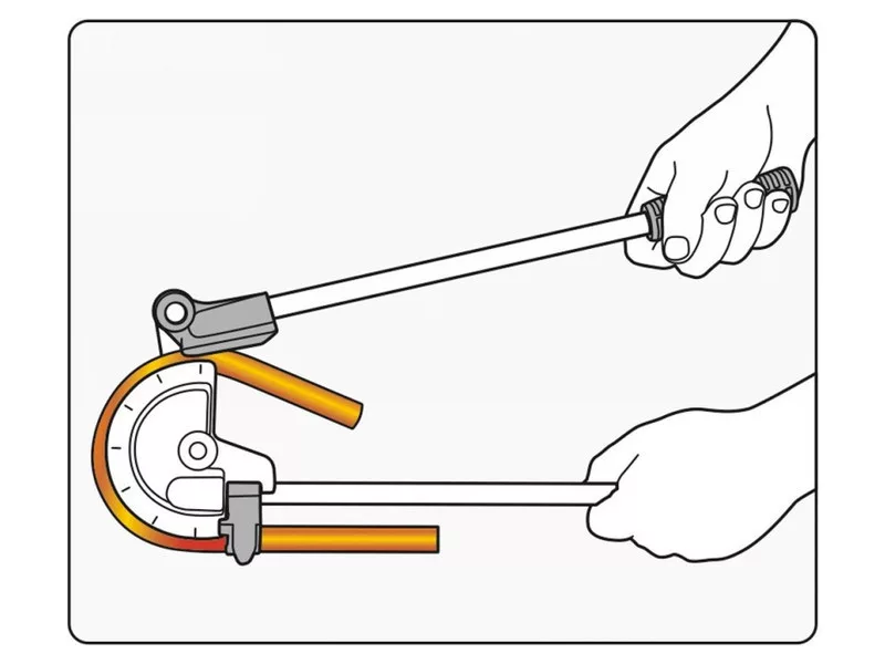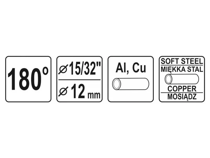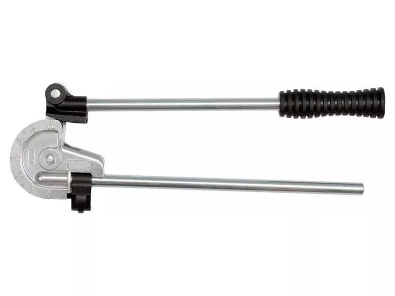 Bender for pipes with a diameter of 12mm. Allows you to bend pipes at an angle of 180° without crushing them. Angles are stamped on the body to determine the degree of bending. The lock improves the clamping of pipes and allows bending even short sections. It allows bending pipes made of: soft copper, aluminum, mild steel.