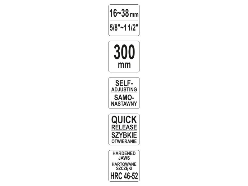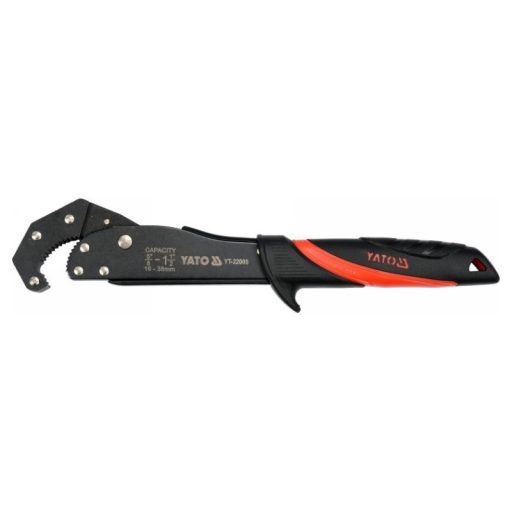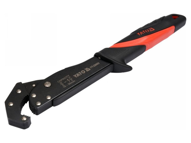His design allowsto work in the range from 16mm to 38mm. Thanks to this, the YATO quick-action wrench successfully replaces the entire set of open-end and adjustable wrenches, reducing both the costs associated with their purchase and the space required for their storage.