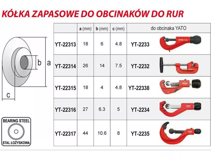 Spare wheel for YT-2232 pipe cutters, made of bearing steel. It is designed for cutting pipes: