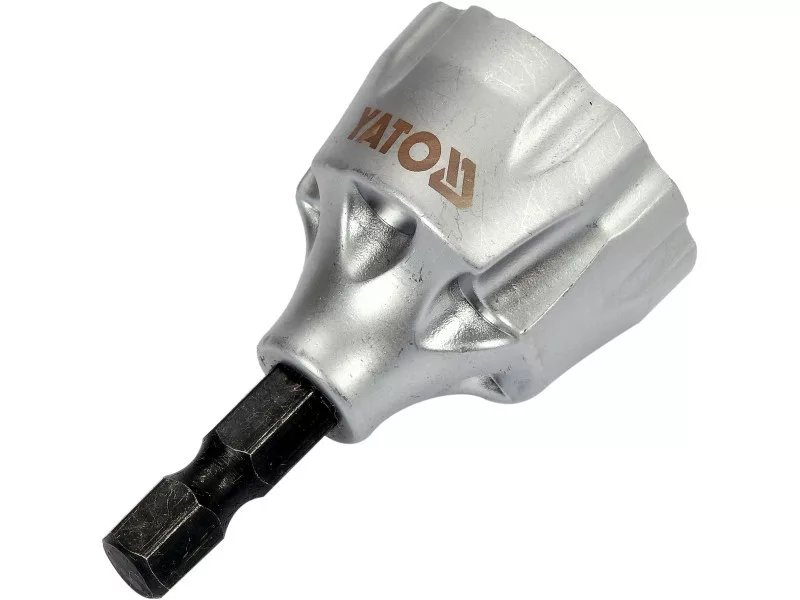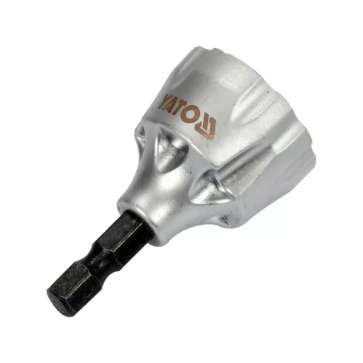 External deburrer- a cutter designed for rounding, smoothing metal parts, wood, etc. The main applications are rounding of threaded ends in screws or rods , removing burrs from the outer edges of tubes , mandrels or dowels. Install the hexagonal mandrel in the chuck of the drill , slide the working part on the workpiece . As it rotates , the inserts mounted inside will cut the material and smooth its surfaces .