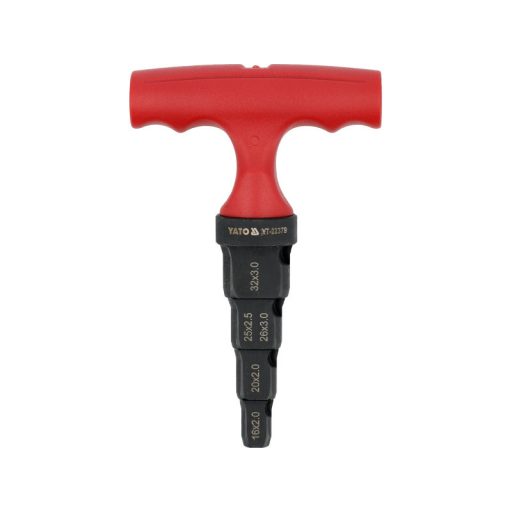 - the calibrator is dedicated to multilayer pipes such as PE-RT/Al/PE-RT and PEX-Al-PEX. It allows for precise preparation of the pipe end before assembly, minimizing the risk of leaks and extending the lifespan of the entire installation.