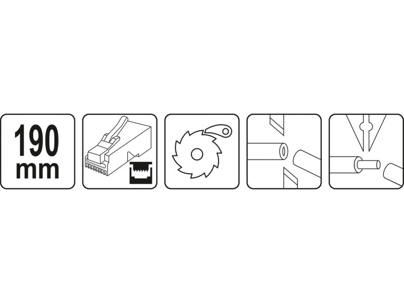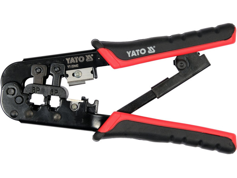 PinchesYT-22442 with ratchet mechanism for crimping telephone and network terminals. The pliers are made of carbon steel subjected to an oxidation process thatóry protects against corrosion. Two-component plastic handle caps. The harder PP component firmly adheres to the body, while the TPR outer part is pleasant to the touch and has anti-slip properties
