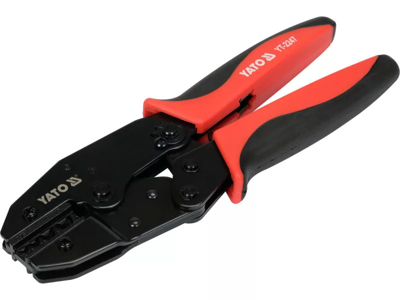The YT-2247 pliers for crimping crimp connectorsós, with a blackened surface to protectór against corrosion and plastic handle caps. The ratcheting mechanism allows quick and precise clamping without excessive force.