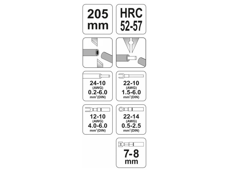 YT-2270 pliers application chart:
