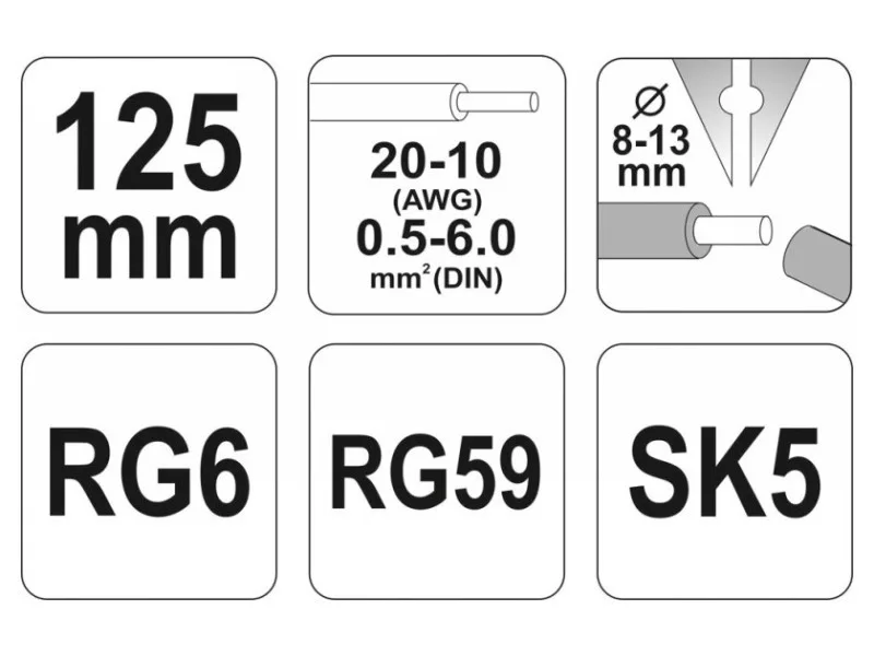 - dedicated holes for stripping insulation from wiresów antenna cables RG59/RG6
