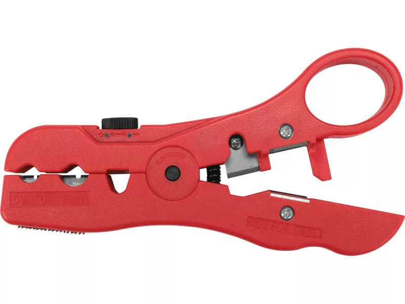 YATO YT-22760 insulation stripper with cutting element in a durable plastic housing. Dedicated to fast and reproducible stripping of insulation from antenna and network cables.