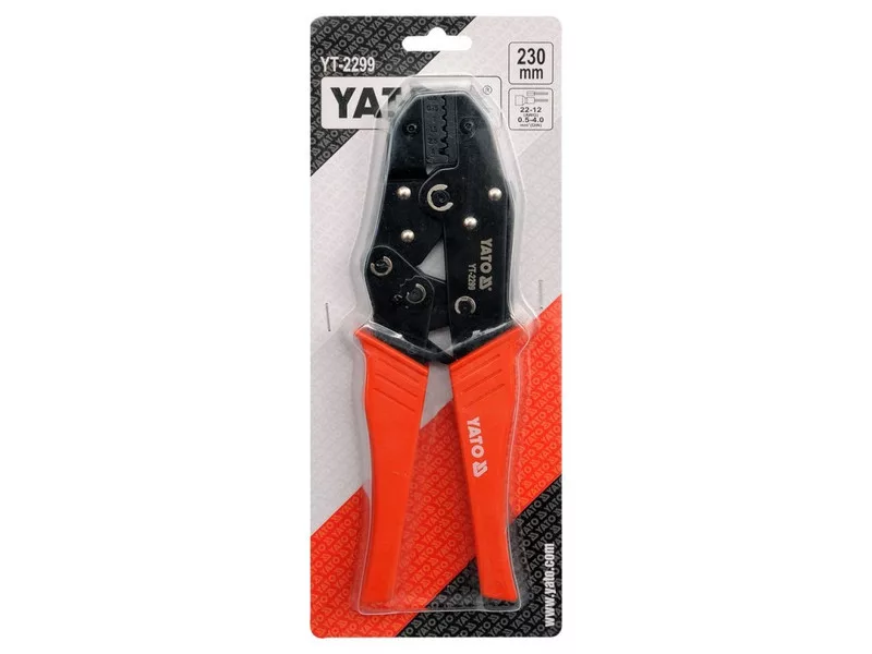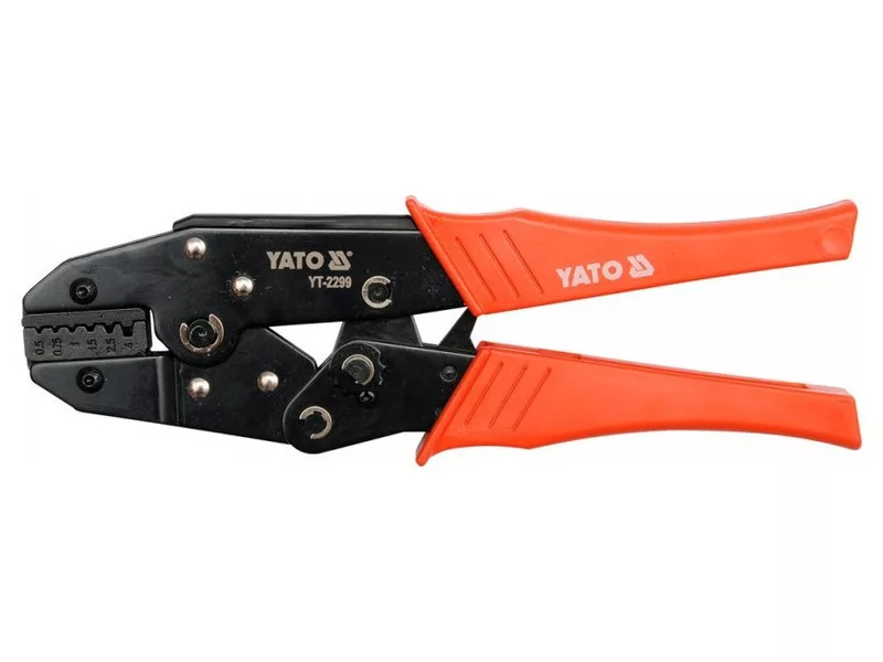 The YT-2299 pliers for crimping sleeve connectors, with a blackened surface that protectsór against corrosion and plastic handle caps. The ratcheting mechanism allows quick and precise clamping without excessive force.