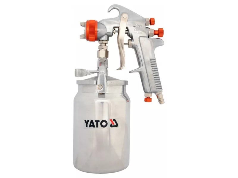 The spray gun is used to perform paint work. The factor necessary for the proper operation of the gun is compressed air. Paint from the gun tank and compressed air supplied to the gun, form a mixture of paint particles and air at the outlet of the gun nozzle.