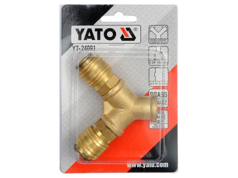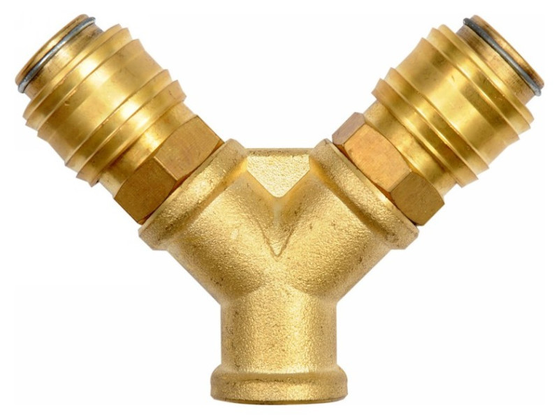 Brass branch 2 x air connector 1/4 ". Internal thread G3/8". Fastening carried out through 4 steel balls.
