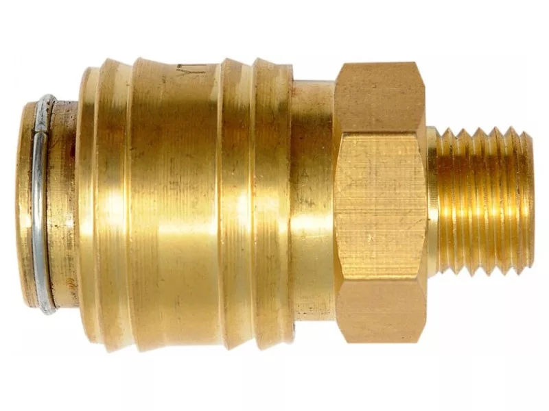 Brass pneumatic quick coupling. External thread G1/4 ". Air connector 1/4". Fastening carried out through 4 steel balls.